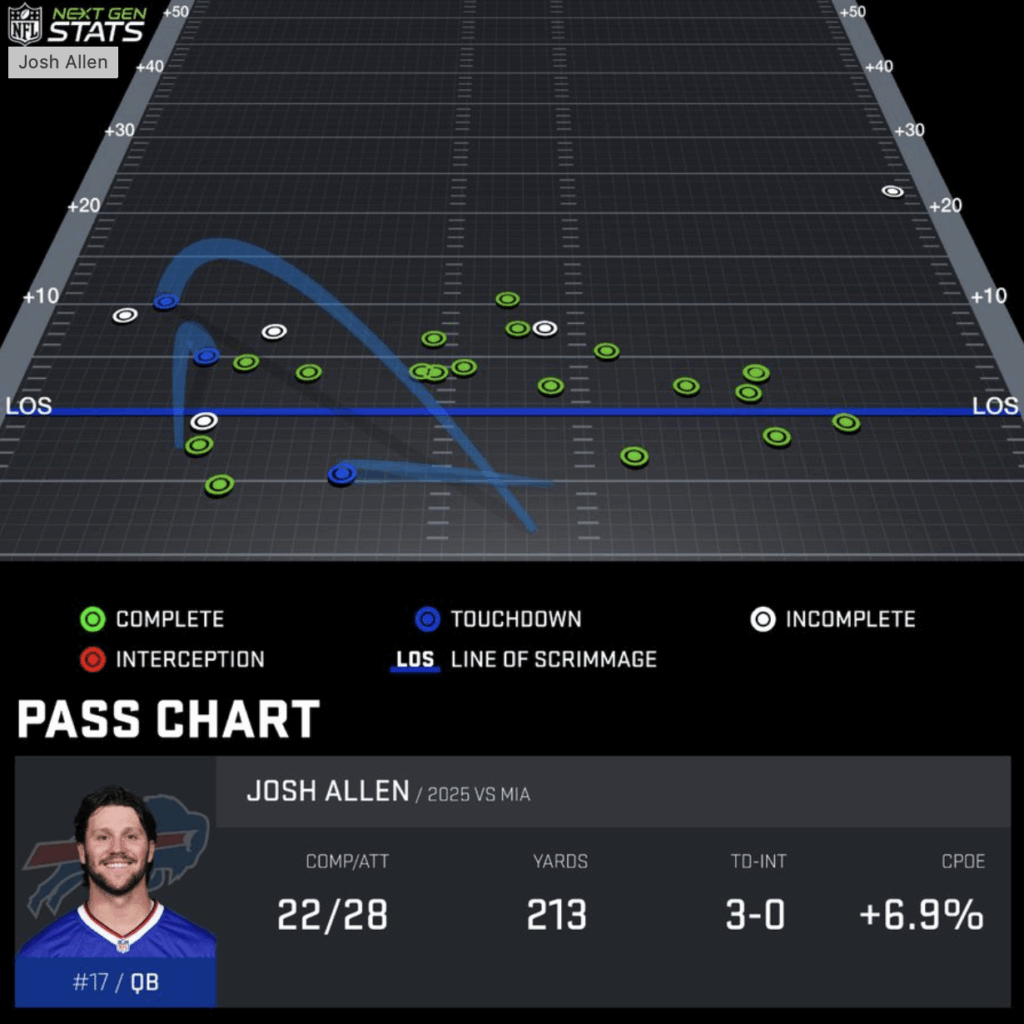 改善していません。プレーコールが当たればパスが成功する、という状態です。とにかく投げちゃえっていうだけなのでディフェンスは見えていません。なので、ディフェンスが罠をはれる。特にアンダーニースの内側のゾーンへのパスは、3週連続でインターセプトされています。もうバレてるんだろうな。